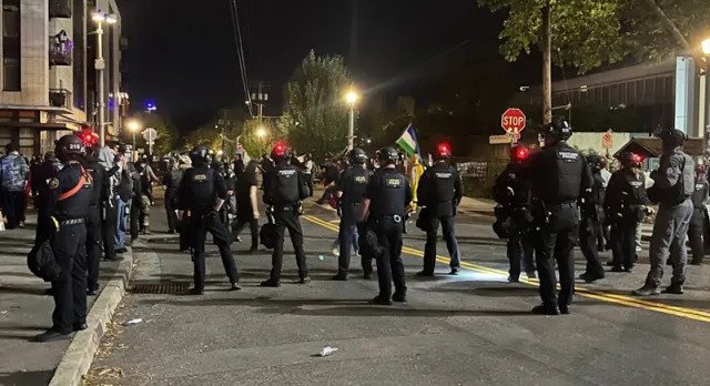 Sgt. Dan DiMatteo, a Portland Police liaison, said the department is dynamically adjusting its presence based on protest intensity. “There’s not a real need for police presence all the time,” DiMatteo said, adding that officers would scale up or down depending on the actions of protesters and counter-protesters.